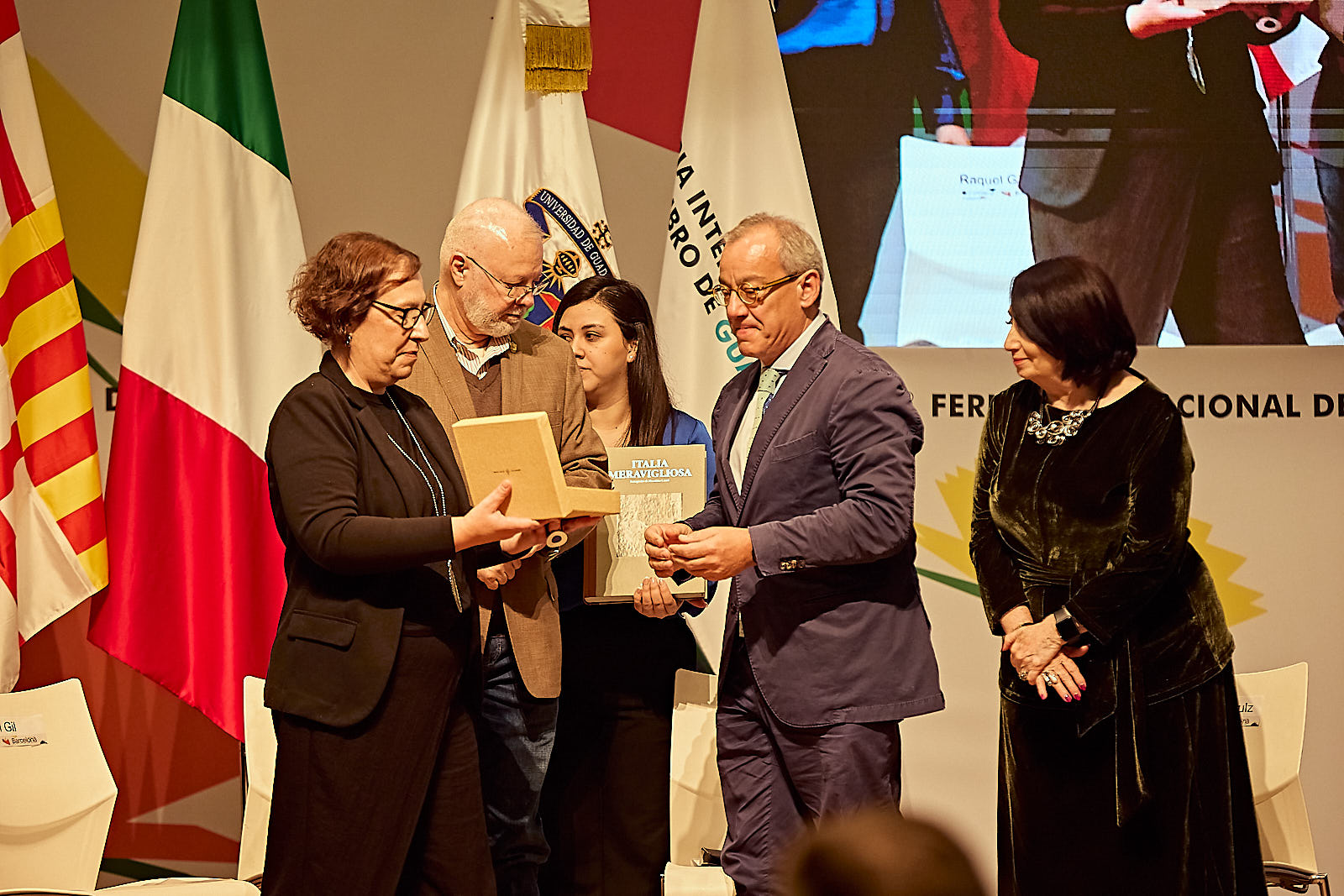 Durante la ceremonia, Raquel Gil, representante del Ayuntamiento de Barcelona, dedicó palabras de gratitud al público tapatío y compartió anécdotas que vivió la delegación a lo largo de los nueve días de Feria: desde el recibimiento multitudinario a uno de sus autores hasta el descubrimiento de la mezcalería “Pare de sufrir”. Entre humor, nostalgia y cercanía, Gil entregó al representante italiano una loseta de plata diseñada por Gaudí, gesto que provocó la sorpresa del público y simbolizó el traspaso de la estafeta cultural.