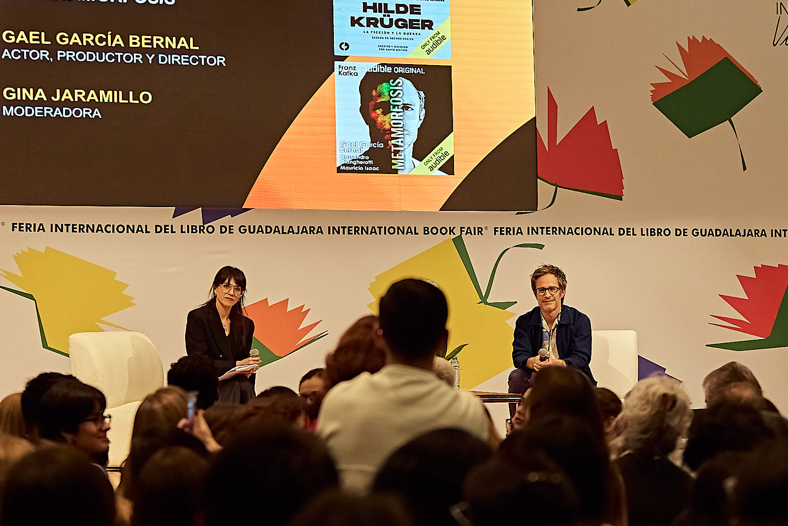 La presencia de Gael García Bernal en la Feria Internacional del Libro de Guadalajara reunió a un público que llenó por completo el espacio destinado a la charla “Detrás de las cámaras de Hilde Krüger y La metamorfosis”. El actor presentó sus dos proyectos sonoros más recientes —la radionovela Hilde Krüger y el audiolibro de La metamorfosis— y reflexionó sobre la voz como herramienta central de su oficio. Recordó que su formación teatral estuvo marcada por una intensa disciplina física y vocal: “Eran cuatro horas de movimiento todos los días y cuatro horas de voz”, señaló, convencido de que esa base técnica le permitió construir personajes a partir de acentos, cadencias y modulaciones que hoy considera esenciales en su trabajo.