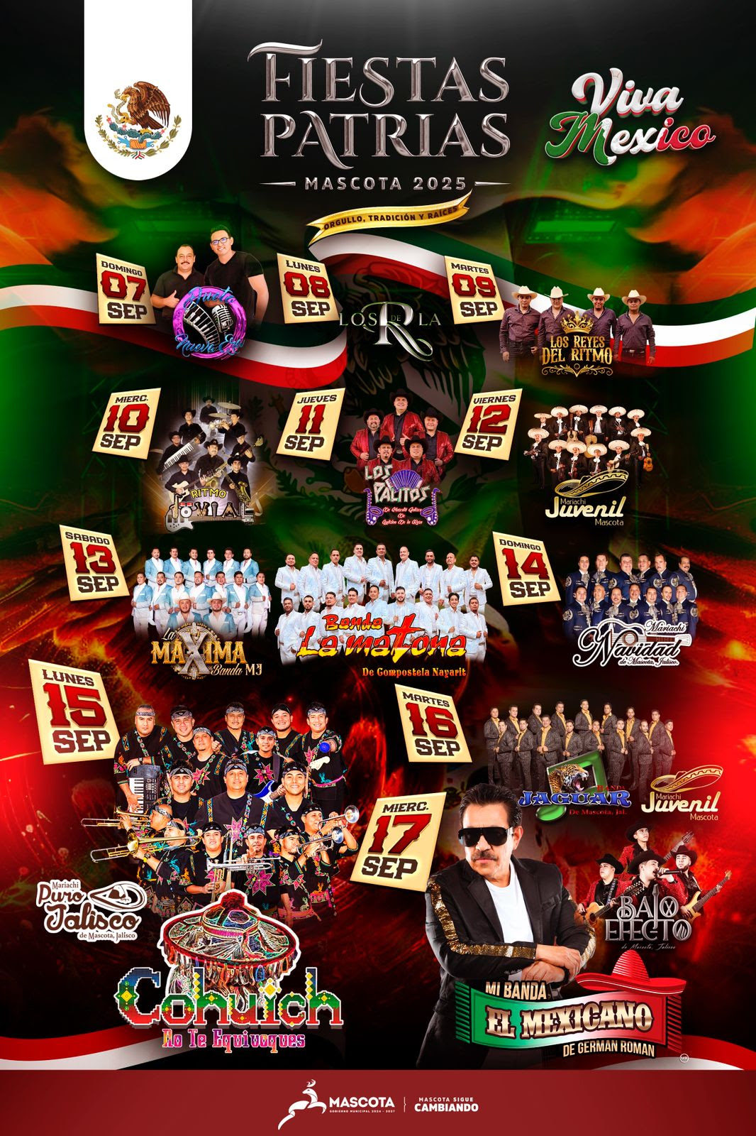 El Pueblo Mágico de Mascota, en Jalisco, se encuentra listo para celebrar sus Fiestas Patrias y Patronales 2025, que se llevarán a cabo desde hoy 7 al 17 de septiembre. Para esta edición se espera superar la afluencia de más de 10 mil visitantes que se registró en 2024, quienes disfrutarán de una de las tradiciones más emblemáticas de la región, llena de música, cultura, religiosidad y fiesta popular.